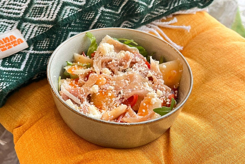 Салат теплий з грушею та прошуто