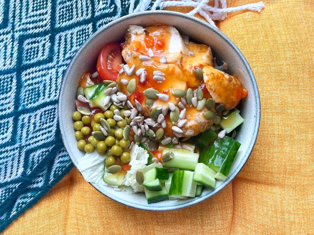 Боул з куркою під кисло-солодким соусом